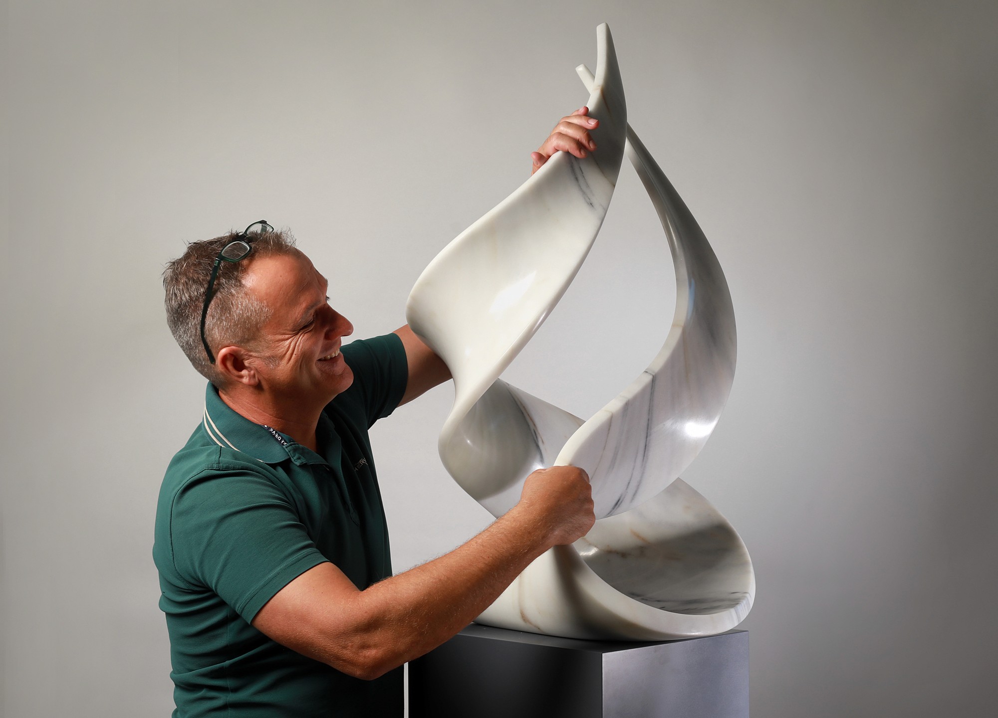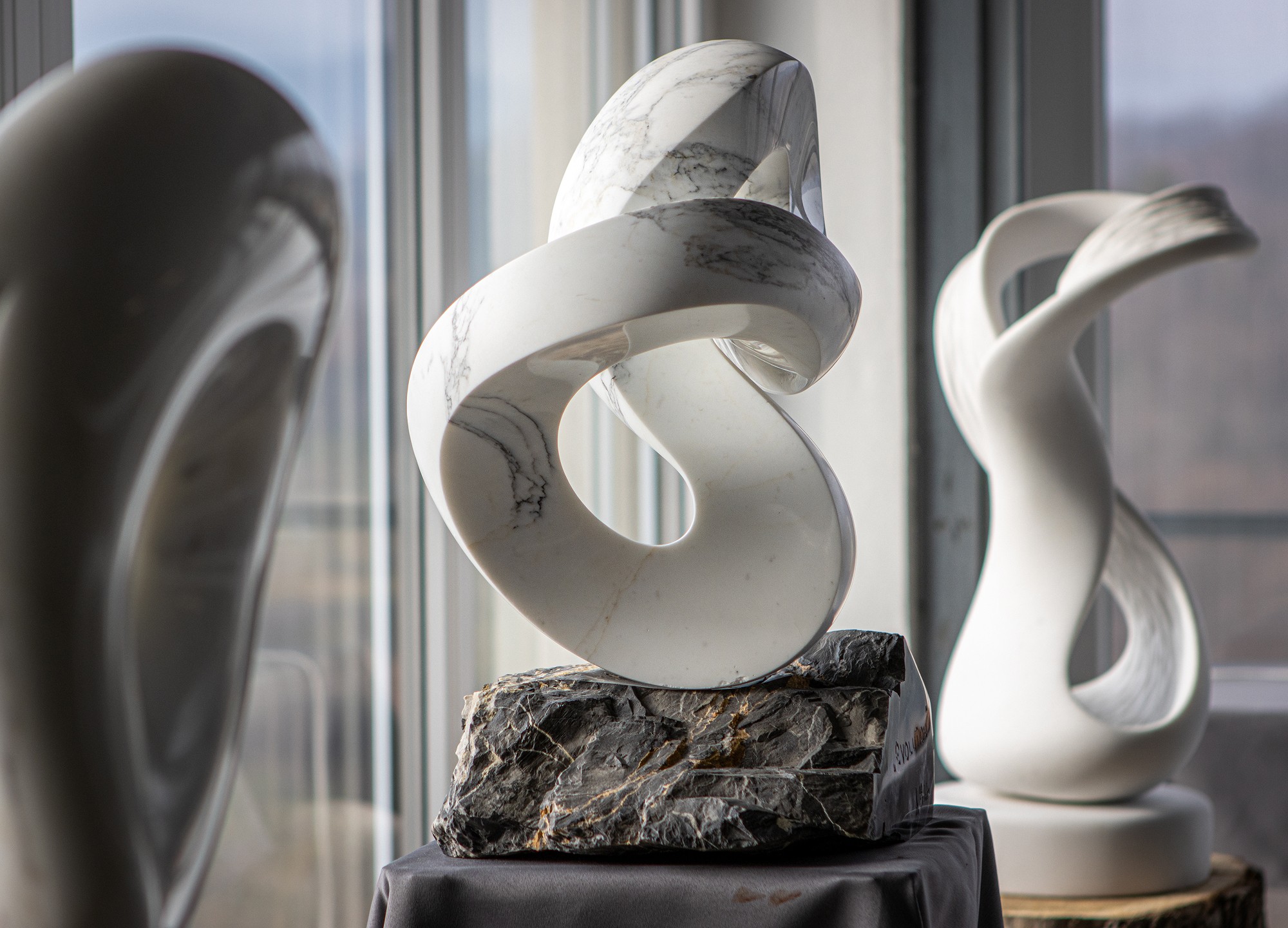 His background in experimental physics shapes the way he approaches sculpture. The same meticulous care once applied to analyzing the properties of light now guides his process of uncovering the hidden potential within marble. His work is an exploration of balance, between strength and lightness, structure and spontaneity, science and art.